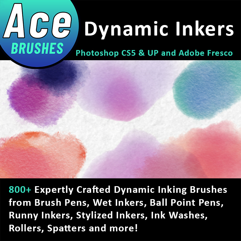 The Ultimate Photoshop Inking Brush Set! This set contains Incredibly Dynamic inking brushes that span ballpoint pens and runny inkers, brush pens, wet inkers, smooth inkers, ink washes, ink rollers, ink splatters and grunge, and plenty of amazing stylized inkers! We're confident that this is the most comprehensive Photoshop inking set available!